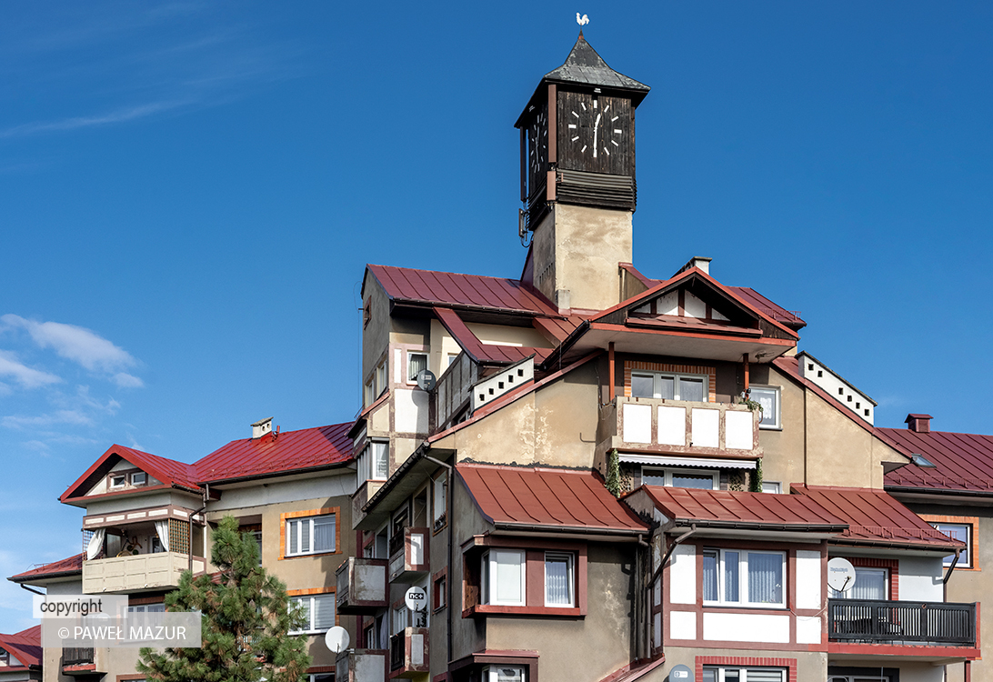 Miejscowi nazywają go „ratuszem”, choć jest blokiem mieszkalnym, a nie urzędem. Budynek powstał na planie litery V i posiada skomplikowaną kaskadową bryłę z licznymi balkonami, daszkami w różnych kierunkach i dominującą nad całością wieżą zegarową z blaszanym kogucikiem (montowaną przy użyciu helikoptera). Został wybudowany w latach 1980-1986 dla pracowników nieczynnej obecnie Kopalni Węgla Kamiennego Dębieńsko. W 1980 roku projekt „ratusza”, który stworzył Janusz Waligóra został ostro skrytykowany podczas Wojewódzkiego Przeglądu Architektury w Katowicach za „fałszywy regionalizm”. Mimo kontrowersji, kopalniany inwestor doprowadził do realizacji obiektu, a 6 lat później blok w Czerwionce-Leszczynach został uznany za najlepszą realizację architektoniczną w Polsce, zdobywając Nagrodę Roku SARP za rok 1986. Adres: ul. 3 Maja 2, Czerwionka-Leszczyny.
