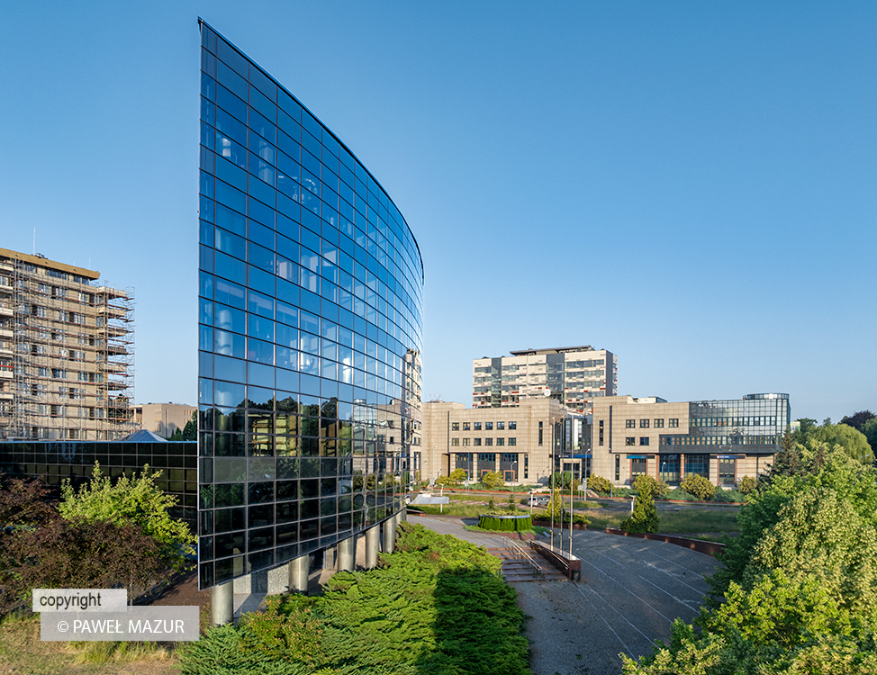 Półokrągły biurowiec w rogu ulic Damrota i Powstańców w Katowicach powstał w latach 1997-1999 według projektu Jana Lelątko, Piotra Pawłowskiego i Zdzisława Stanika. W 2000 roku projekt otrzymał nagrody ministra budownictwa i ministra spraw wewnętrznych. Powstał dla Banku Rozwoju Eksportu, obecnie mBanku, który w 2024 roku wystawił go na sprzedaż za 32 miliony złotych. Posiada 6 kondygnacji naziemnych i ok. 7,5 tys. m kw. powierzchni. Jego główna część powstała na planie wycinka koła i tworzy efektowną, łukową elewację, całkowicie przeszkloną od strony północnej. Adres: ul. Powstańców 43, Katowice.