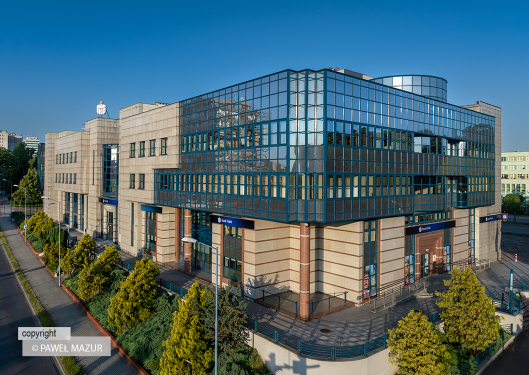 Ogromne przeszklenia z niebieskiego szkła, aluminium, kamienne wykładziny, nieregularnie rozrzucone wykusze – budynek PKO BP to modelowy przykład polskiego postmodernizmu korporacyjnego „na bogato” z lat 90. ubiegłego wieku. Wybudowany w latach 1993-1996 przez Przedsiębiorstwo Budownictwa Ogólnego Śląsk był siedzibą nie tylko oddziału banku, ale także jego Regionalnego Ośrodka Obliczeniowego w Katowicach. Autorami projektu architektonicznego budynku byli Aleksander Czora oraz Wojciech Podleski. Adres: ul. Konstantego Damrota 23, Katowice.