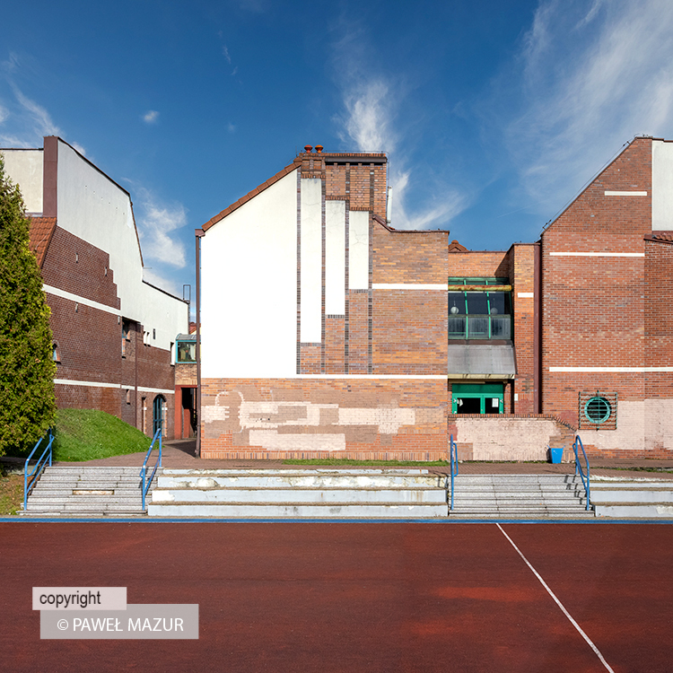 Kompleks szkolny w Giszowcu został wybudowany w latach 1990-2002 według konkursowego, zwycięskiego projektu Stanisława Niemczyka oraz Anny Pieńkowskiej-Kuszewskiej i Marka Kuszewskiego. Inwestycja była realizowana etapami, z których pierwszy został ukończony już w 1993 roku oddaniem części zespołu dla klas młodszych. Obecnie w szkole uczy się ok. 1000 uczniów, którzy korzystają z powierzchni użytkowej prawie 2 tysięcy metrów, w tym sal gimnastycznych, kilku boisk sportowych, basenu, kilku patio i dziedzińca z podcieniami oraz kolumnadą obrośniętą bluszczem. Całość przypomina niewielkie miasteczko (część sal to samodzielne domki) i jest nazywana „szkołą marzeń”. Kompleks zrealizowany w stylu postmodernistycznym, jest określany w literaturze jako „antymodernistyczny”, co dość dobrze i prosto wyjaśnia – na stronie internetowej szkoły – opis jej architektury, jako takiej która „nawiązuje do zabytkowej zabudowy, jest duża, rozległa, a jednocześnie przytulna, z zakątkami do zabawy i odpoczynku”. Adres: ul. Przyjazna 7a, Katowice.