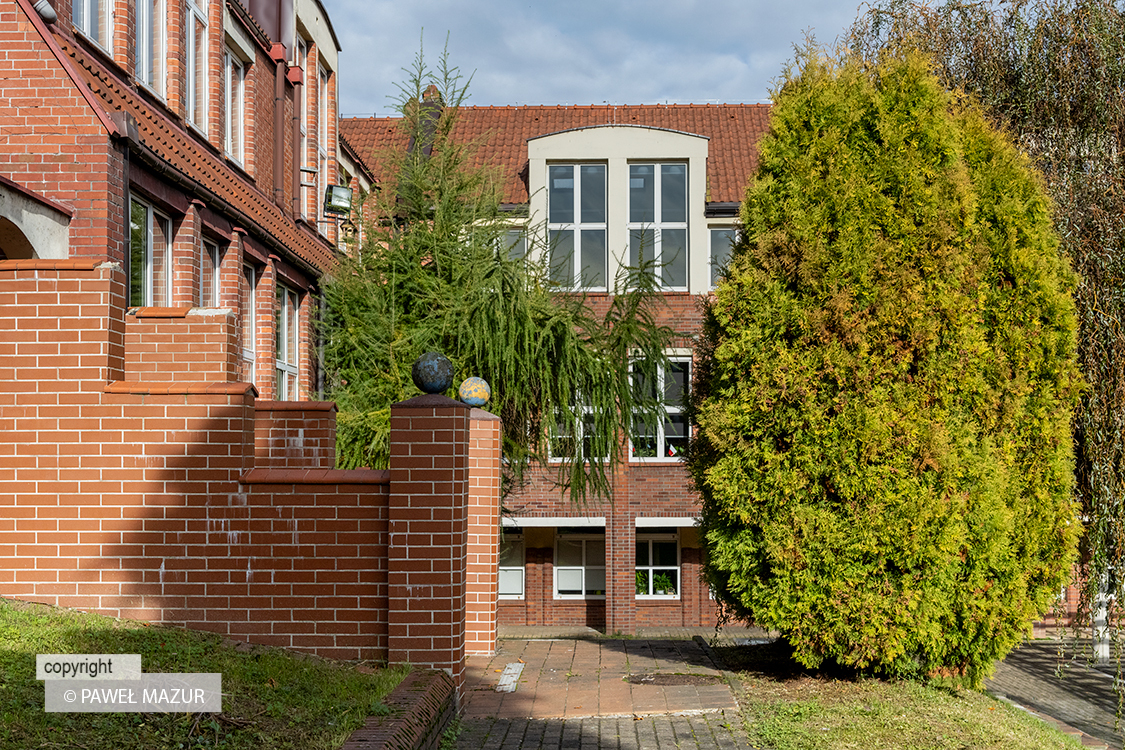 Kompleks szkolny w Giszowcu został wybudowany w latach 1990-2002 według konkursowego, zwycięskiego projektu Stanisława Niemczyka oraz Anny Pieńkowskiej-Kuszewskiej i Marka Kuszewskiego. Inwestycja była realizowana etapami, z których pierwszy został ukończony już w 1993 roku oddaniem części zespołu dla klas młodszych. Obecnie w szkole uczy się ok. 1000 uczniów, którzy korzystają z powierzchni użytkowej prawie 2 tysięcy metrów, w tym sal gimnastycznych, kilku boisk sportowych, basenu, kilku patio i dziedzińca z podcieniami oraz kolumnadą obrośniętą bluszczem. Całość przypomina niewielkie miasteczko (część sal to samodzielne domki) i jest nazywana „szkołą marzeń”. Kompleks zrealizowany w stylu postmodernistycznym, jest określany w literaturze jako „antymodernistyczny”, co dość dobrze i prosto wyjaśnia – na stronie internetowej szkoły – opis jej architektury, jako takiej która „nawiązuje do zabytkowej zabudowy, jest duża, rozległa, a jednocześnie przytulna, z zakątkami do zabawy i odpoczynku”. Adres: ul. Przyjazna 7a, Katowice.
