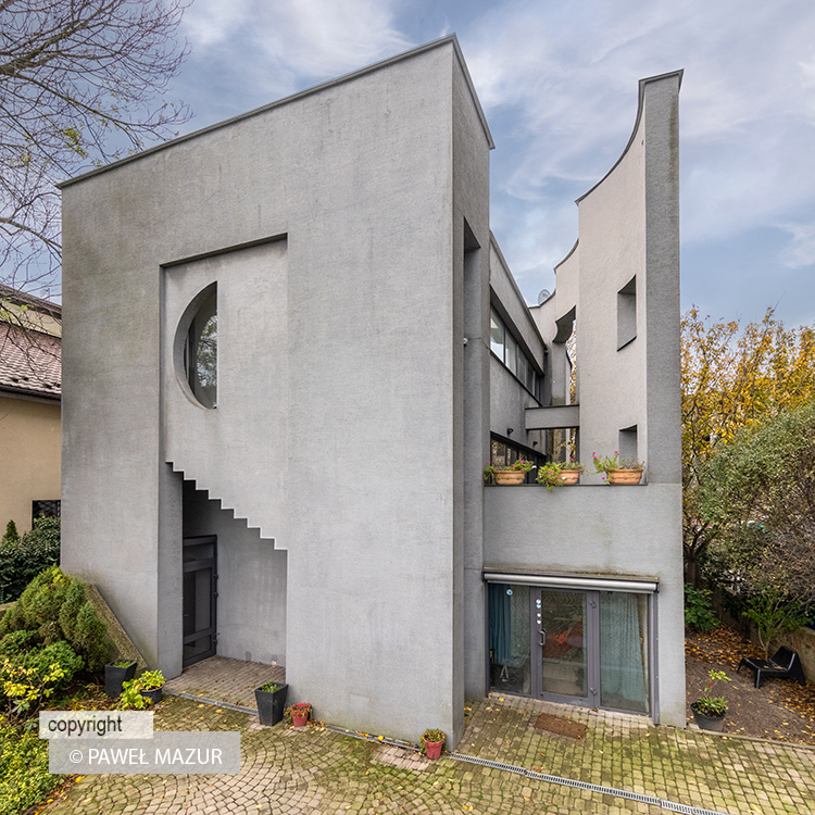 Postmodernistyczna willa zaprojektowana przez Dariusza Kozłowskiego i Marię Misiągiewicz, wybudowana w latach 1992–1996 na krakowskim Zwierzyńcu nad rzeką Rudawą. Jedna z najważniejszych realizacji willowych polskiego postmodernizmu, w pełni oddająca ideę „wspaniałego kłamstwa” Dariusza Kozłowskiego – gdzie funkcjonalność (dom mieszkalny, prywatność) zostaje zasłonięta architektoniczną fikcją i przedstawieniem (statek, teatralność). Willa powstała w latach 1992-1996, jest budynkiem dwurodzinnym o powierzchni 410 metrów. Adres: ul. Emaus 27a–b, Kraków.