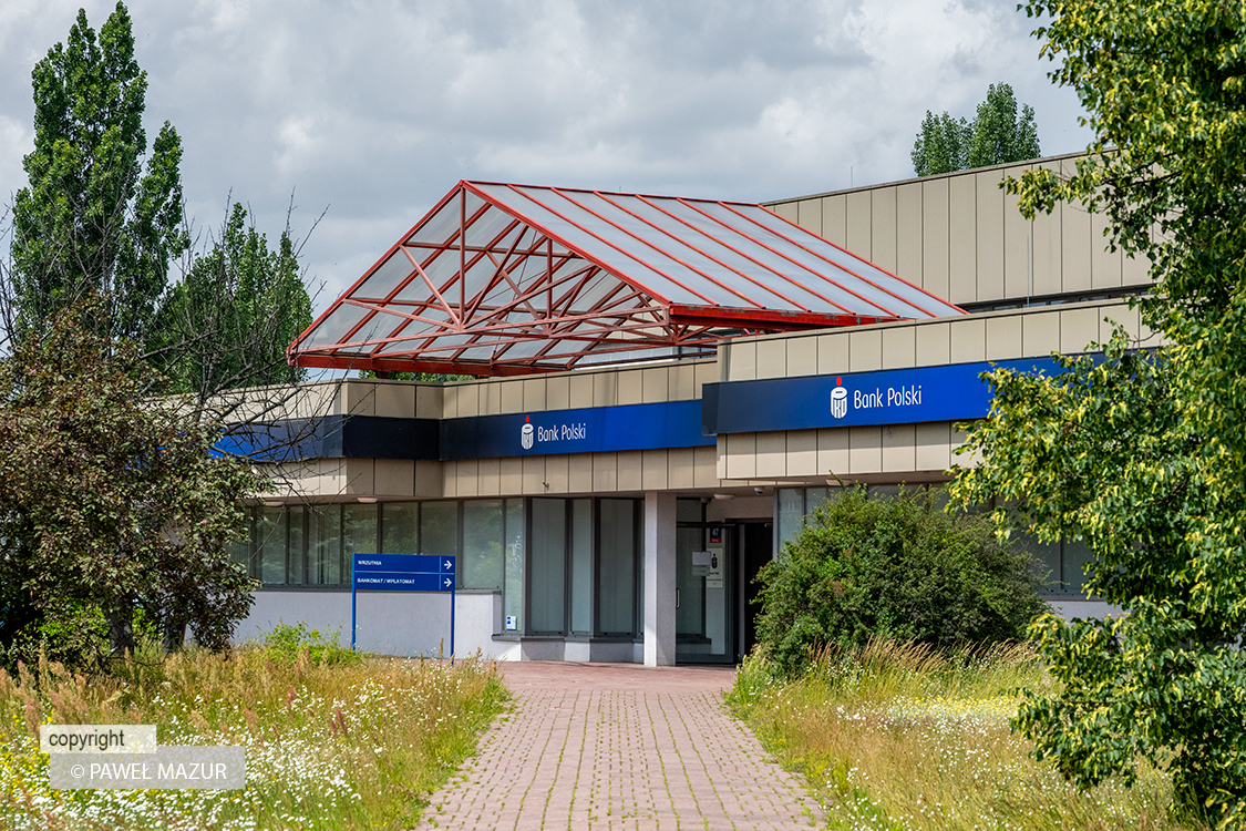 Niski pawilon bankowy przylegający od zachodu do 9-piętrowego biurowca Real Office przy ul. Aleksandrowskiej na Bałutach w Łodzi. Powstał z przebudowy dawnej stołówki zakładowej. Wybudowany na początku lat 90. według projektu autorów Osiedla Radogoszcz Wschód – Jakuba Wujka i Zdzisława Lipskiego. Adres: Aleksandrowska 47, Łódź.