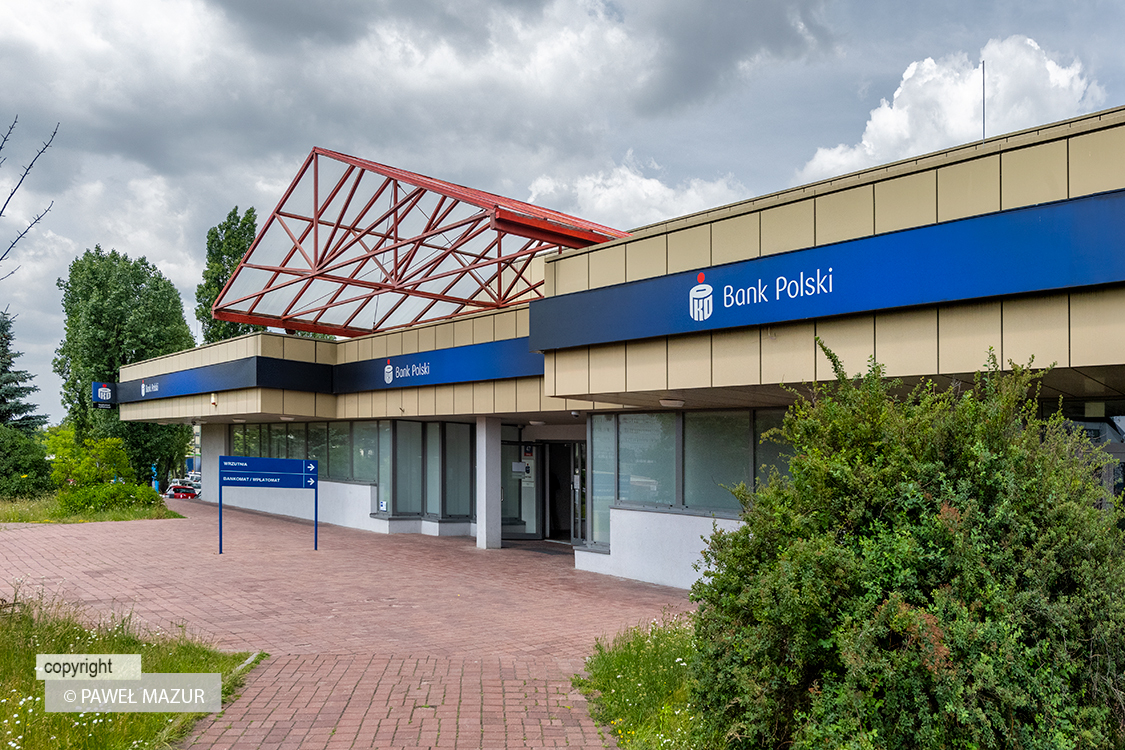 Niski pawilon bankowy przylegający od zachodu do 9-piętrowego biurowca Real Office przy ul. Aleksandrowskiej na Bałutach w Łodzi. Powstał z przebudowy dawnej stołówki zakładowej. Wybudowany na początku lat 90. według projektu autorów Osiedla Radogoszcz Wschód – Jakuba Wujka i Zdzisława Lipskiego. Adres: Aleksandrowska 47, Łódź.