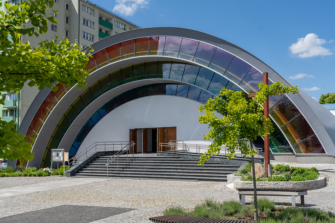 -Gdy patrzy się na nowy kościół, z zewnątrz przykuwa wzrok przede wszystkim tęcza rozciągająca się nad głównym wejściem. Jej wymowa jest bardzo głęboka. – Tęcza to starotestamentalny znak pierwszego przymierza, jakie na zakończenie potopu Pan Bóg zawarł z człowiekiem. I taki jest zamysł tęczy w naszym kościele – mówił proboszcz parafii św. Karola Boromeusza w Opolu ks. Zbigniew Bienkiewicz w artykule Gościa Niedzielnego, który ukazał się w związku z konsekracją świątyni.