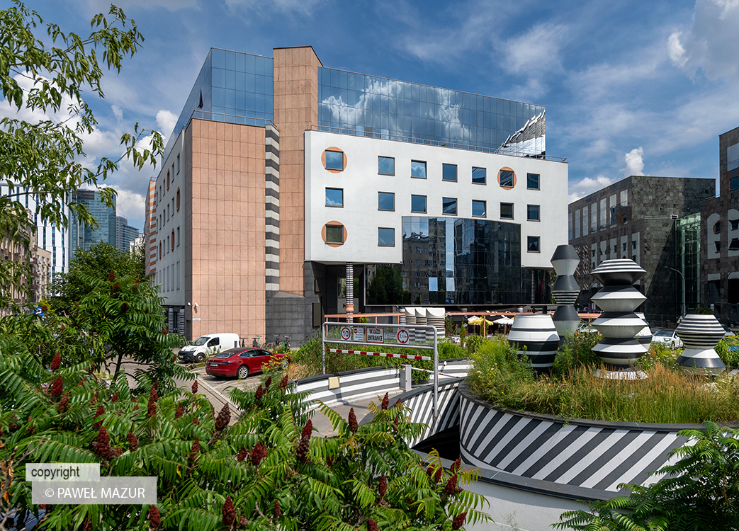 Biurowiec w centrum stolicy przy ul. Chmielnej wybudowany w latach 1993-1996 jako Aktyn Business Center. Zrealizowany według projektu Miljenko Dumenčića i Krzysztofa Kamińskiego w stylu postmodernistycznym. Uratowany od wyburzenia i odnowiony w latach 2020-2022 przez firmę Syrena Real Estate. Modernizacja obiektu, zaprojektowana przez architektkę wnętrz Annę Łoskiewicz (Łoskiewicz Studio) nadała mu nowy, jeszcze bardziej postmodernistyczny wygląd odwołujący się do stylu Memphis i elementów retro. Zmianom uległa elewacja na której pojawiły się wyraziste geometryczne wzory, wejście, wnętrza oraz plac przed budynkiem. Biurowiec zmienił nazwę na HOP (ang. chmiel) i stał się przykładem udanej modernizacji obiektu z lat 90. nie przez zatarcie, ale zaakcentowanie i rozwinięcie jego postmodernistycznego stylu. Adres: ul. Chmielna 132/134, Warszawa.