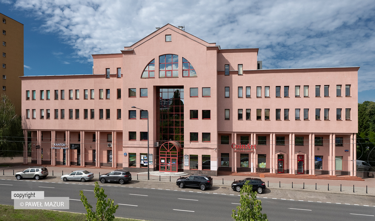 „Najntisy”, czyli lata 90. w pałacowej, stołecznej formie. Różowy, postmodernistyczny budynek biurowy klasy B powstał w latach 1989-1993 według projektu Krzysztofa Chwaliboga, Ryszarda Girtlera i Jerzego Kołomyckiego. Wyposażony w typowe i topowe rozwiązania architektury transformacji: kolumnadę, szkło refleksyjne w metalowej kracie, ryzalit i łuki. Przez lata budynek był siedzibą wielu firm budowlanych i deweloperskich. Mieściły się tu m.in. spółki z grupy J.W. Construction oraz biuro projektowe JW Architecture. Obecnie właścicielem i głównym zarządcą jest spółka REDCO. Adres: ul. Okopowa 47, Warszawa.