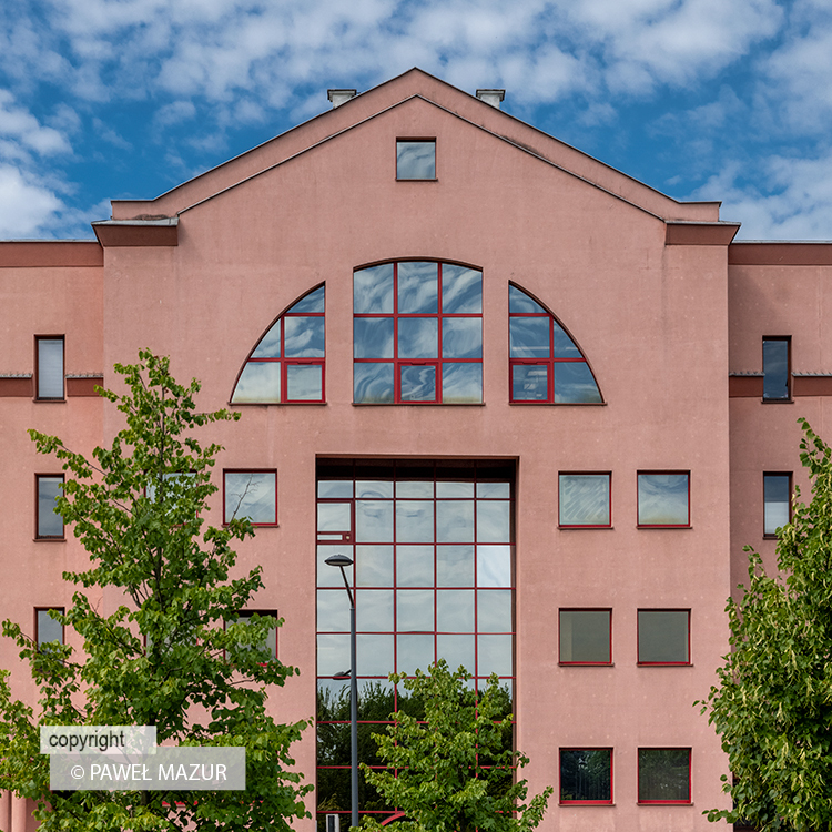 „Najntisy”, czyli lata 90. w pałacowej, stołecznej formie. Różowy, postmodernistyczny budynek biurowy klasy B powstał w latach 1989-1993 według projektu Krzysztofa Chwaliboga, Ryszarda Girtlera i Jerzego Kołomyckiego. Wyposażony w typowe i topowe rozwiązania architektury transformacji: kolumnadę, szkło refleksyjne w metalowej kracie, ryzalit i łuki. Przez lata budynek był siedzibą wielu firm budowlanych i deweloperskich. Mieściły się tu m.in. spółki z grupy J.W. Construction oraz biuro projektowe JW Architecture. Obecnie właścicielem i głównym zarządcą jest spółka REDCO. Adres: ul. Okopowa 47, Warszawa.