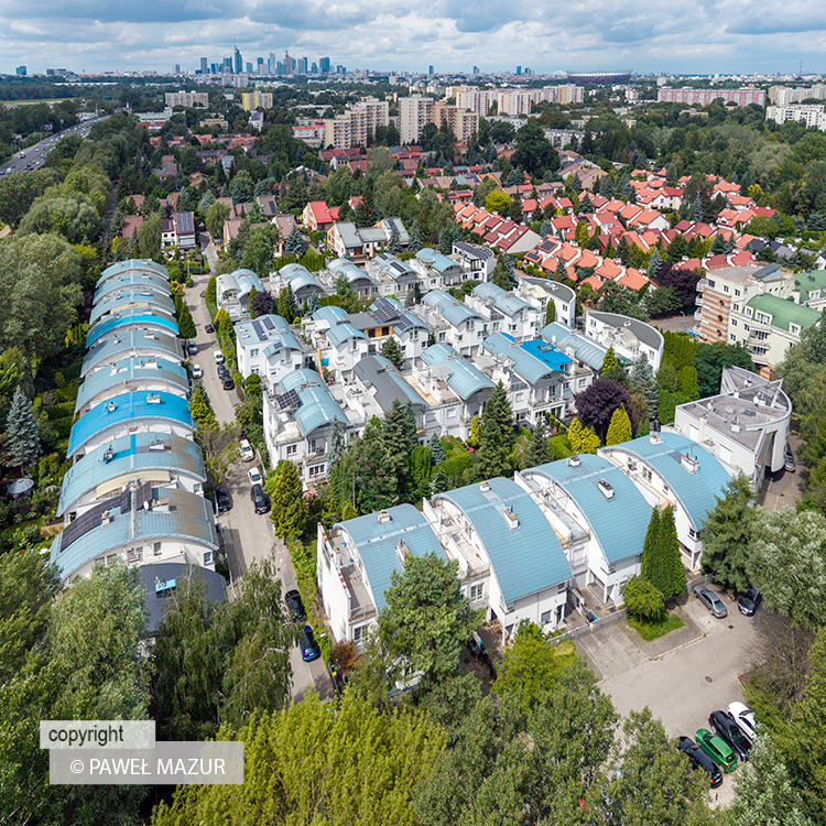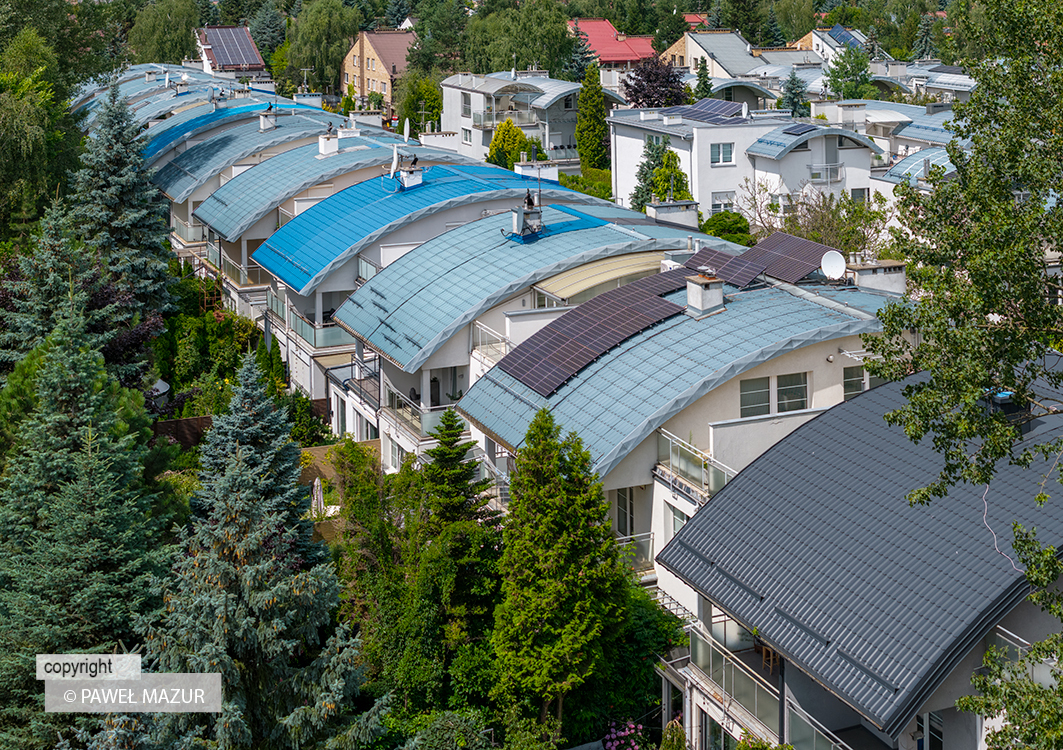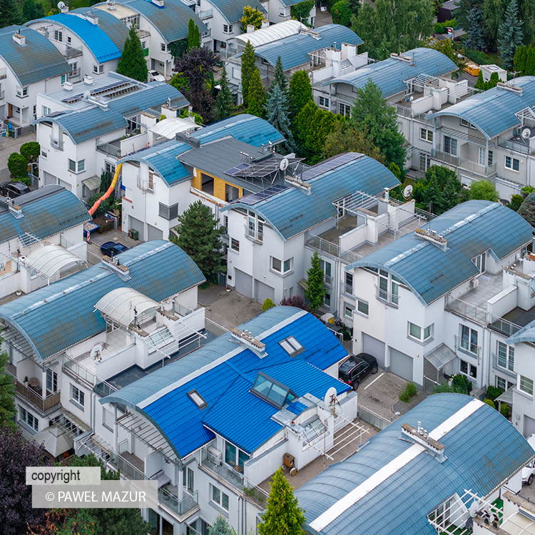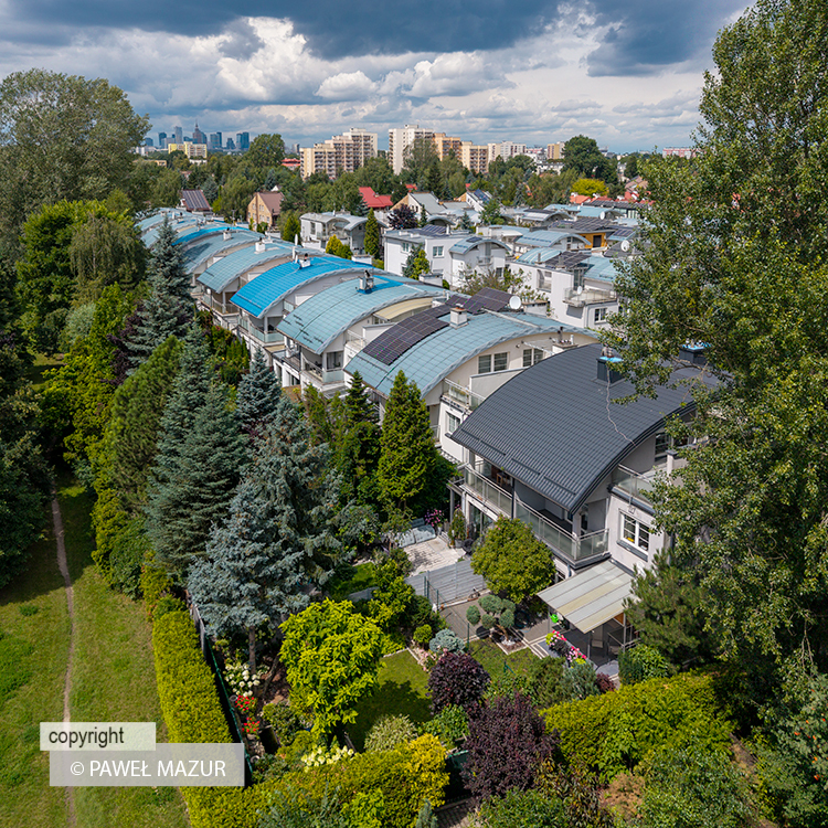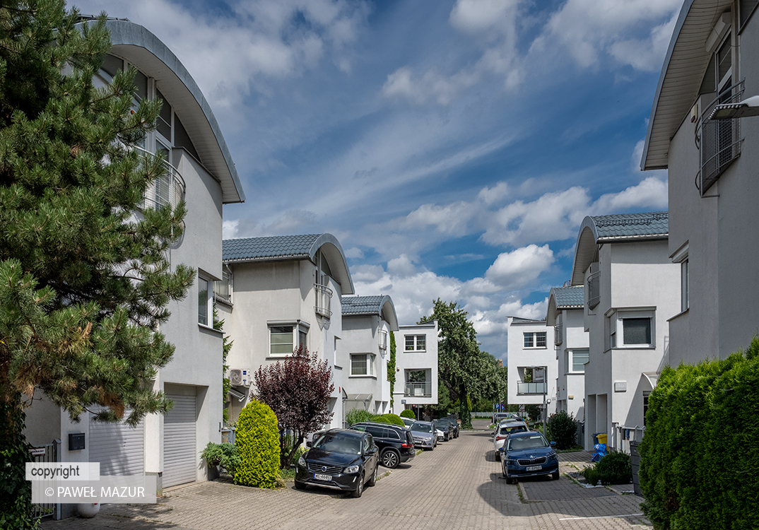 Kompleks szeregowych domów jednorodzinnych na Pradze-Południe, w rejonie Saskiej Kępy. Projekt osiedla powstał w 1994 roku, a jego autorami byli Wojciech Hermanowicz, Piotr Majewski oraz Andrzej Wyszyński. Osiedle powstało w w latach 1996–1997. Charakterystycznym elementem wszystkich 60 segmentów połączonych w 5 podłużnych budynków są półkoliste, niebieskie dachy. Kompleks otrzymał nagrodę 3. stopnia Ministra Spraw Wewnętrznych i Administracji (1998).