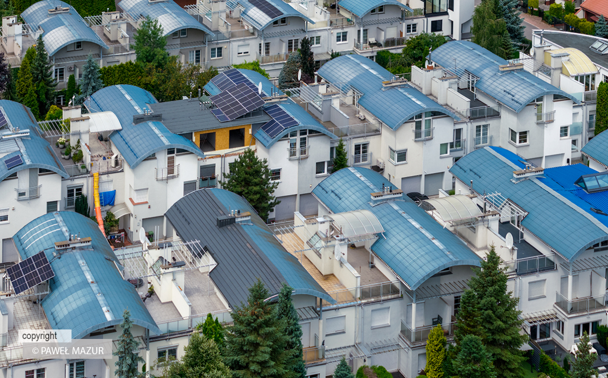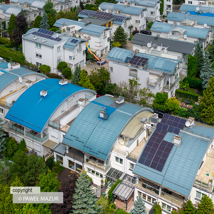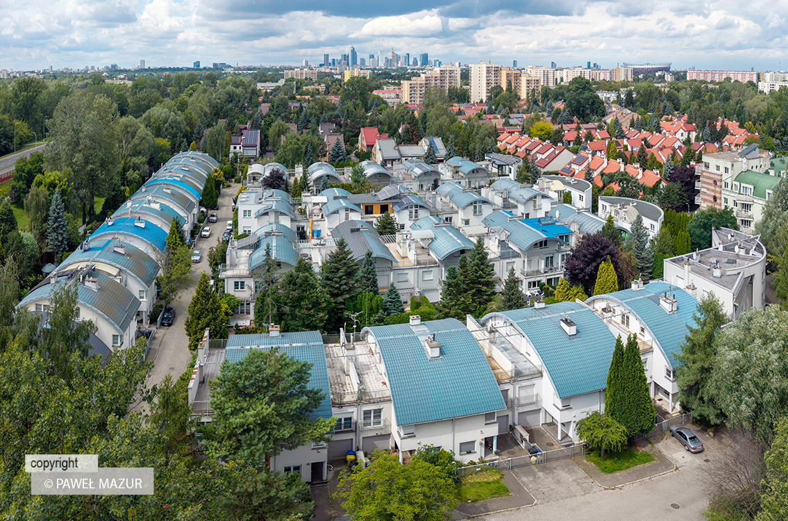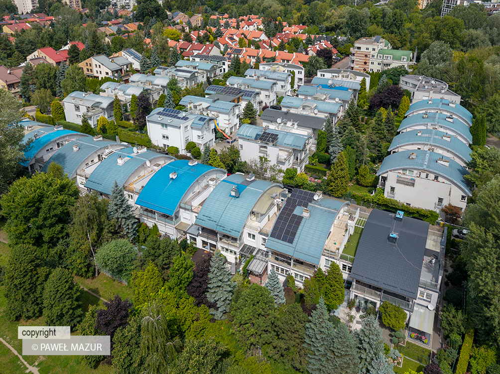 Kompleks szeregowych domów jednorodzinnych na Pradze-Południe, w rejonie Saskiej Kępy. Projekt osiedla powstał w 1994 roku, a jego autorami byli Wojciech Hermanowicz, Piotr Majewski oraz Andrzej Wyszyński. Osiedle powstało w w latach 1996–1997. Charakterystycznym elementem wszystkich 60 segmentów połączonych w 5 podłużnych budynków są półkoliste, niebieskie dachy. Kompleks otrzymał nagrodę 3. stopnia Ministra Spraw Wewnętrznych i Administracji (1998).