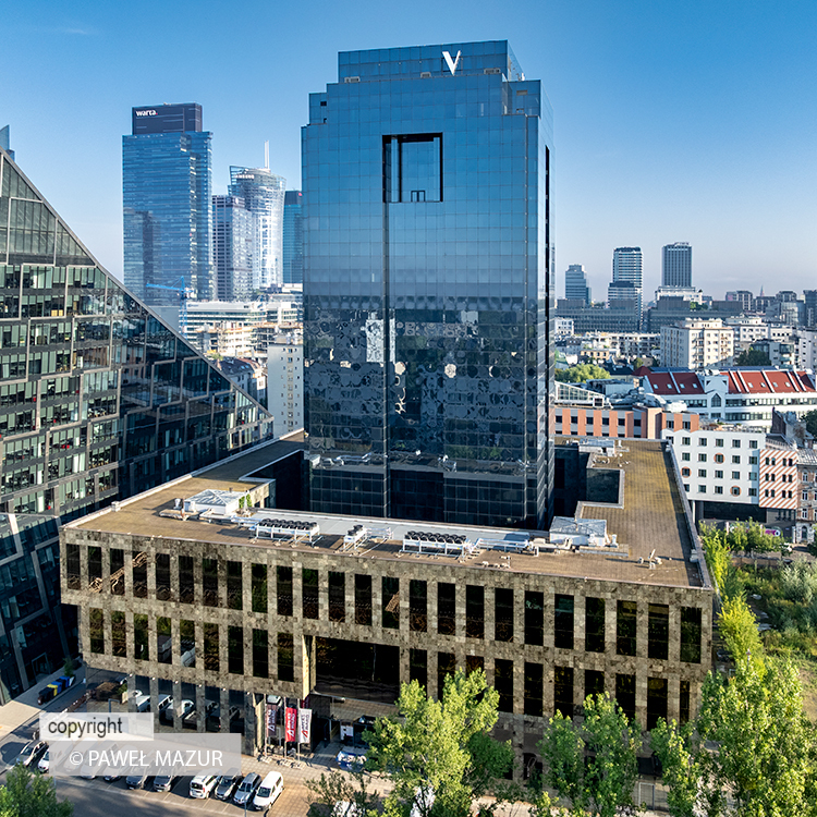 Trwająca od 2024 roku modernizacja V Tower (d. Warta Tower) stała się przykładem ekologicznego podejścia do problemu starzejących się i nie spełniających obecnych standardów budynków z lat 90 ub. wieku. Mimo szacunków, że wyburzenie gmachu i budowa nowego obiektu byłyby tańszym rozwiązaniem, spółka Cornerstone Investment Management – nowy właściciel nieruchomości, przeprowadza jego rewitalizację i modernizację. Jak się oblicza, prawdopodobny ślad węglowy realizacji zupełnie nowego gmachu wyniósłby ok. 27 tys. ton emisji gazów cieplarnianych, natomiast jego generalny remont 4-krotnie mniej. Zmodernizowany biurowiec ma spełniać nie tylko wszelkie obecnie obowiązujące parametry techniczne ale też najwyższe standardy ekologiczne (m.in. BREEAM Excellent, WELL). Warta Tower powstała w latach 1998-2000 według projektu Leszka Kazimierza Klajnerta oraz Jerzego Czyża. Wybudowany w stylu postmodernistycznym gmach ma 82 metry wysokości i 22 kondygnacje. Obecna modernizacja jego wnętrz (bryła i elewacje pozostaną zachowane) została zaprojektowana przez warszawską pracownię APA Wojciechowski. Adres: ul. Chmielna 85/87, Warszawa.